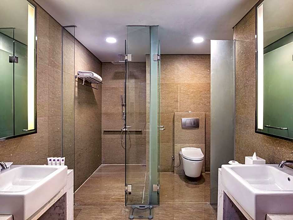 Air-conditioned room with a flat-screen satellite TV, coffee/tea maker and a fridge. The private bathroom features see-through glass walls and free toiletries. Guests can also enjoy free WiFi access.